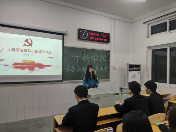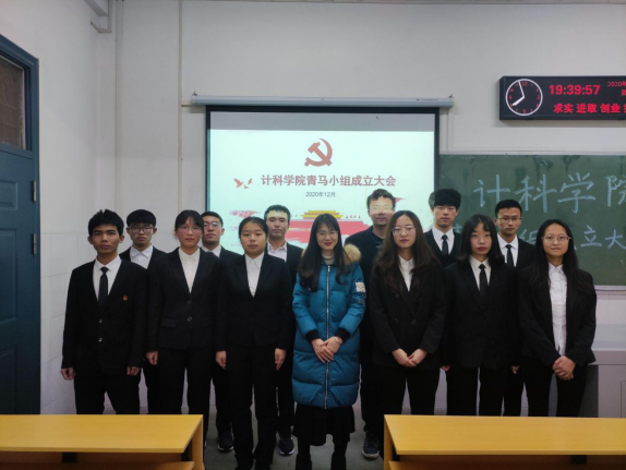 最后,组织部副部董家宏和青马小组全体成员都上台进行自我介绍,并表明自己的决心。作为新一代中国特色社会主义事业的建设者和接班人,我们要积极宣传党的路线、方针、政策,拥护党的领导,同时我们需要具有强烈的历史使命感和社会责任感。所有参加成立大会的成员集拍照留念,记录这一难忘时刻。至此,本次成立大会圆满结束。