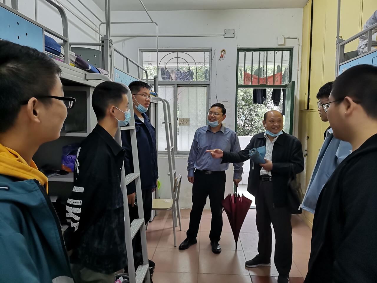 (通讯员/谭京红) 9月22日上午10点整,计算机科学公司党委书记高明成、党委副书记颜学俊携全体辅导员,分头走访了公司2020级新生寝室。