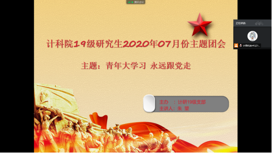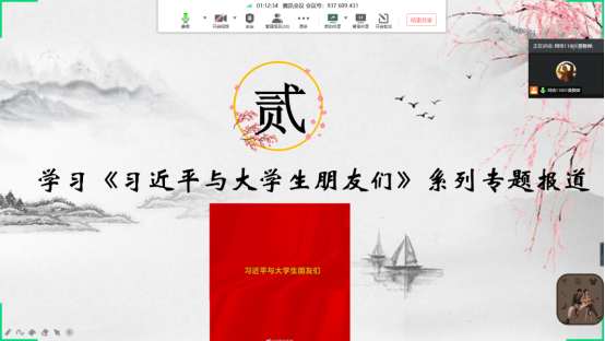 此次团会以线上形式,组织同学们学习“百生讲坛”省级优秀主讲人和活力团支的相关材料;观看《中国青年报》刊发的《习近平与老员工朋友们》系列专题报道,并展开以“我为什么入党?”为主题的研讨,让同学们领会和学习贯彻习近平新时代中国特色社会主义思想,引发同学们对入党的思考和自我探寻入党的初心。最后主持人宣读“百生讲坛”赛事规则,并鼓励同学们积极报名参加。