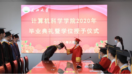 2020年6月28日上午10:00,伟德国际victor1946在5教501举行2020年毕业典礼暨学位授予仪式。公司经理崔艳荣,党委书记高明成,副经理向宇、詹炜、宋文广,党委副书记颜学俊,各系主任,全体辅导员及15名毕业生代表在现场参加毕业典礼。根据疫情防控要求,今年毕业典礼采取线上线下相结合的方式,未到现场的师生也通过腾讯会议参加了典礼。
