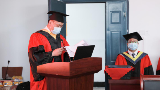 典礼仪式由公司党委书记高明成主持,他代表公司全体师生向544名毕业生顺利毕业表示祝贺。党委副书记颜学俊宣读了伟德victor1946网站关于表彰公司2020届优秀毕业生的文件;本科毕业生代表陈潜和硕士毕业生代表余珺瑞分别发言,表达了对母校、师长的感恩和深深的眷恋;教师代表雷鸣老师祝愿同学们昂首挺胸迈步走向未来,志存高远,在祖国大地挥洒青春的汗水。
