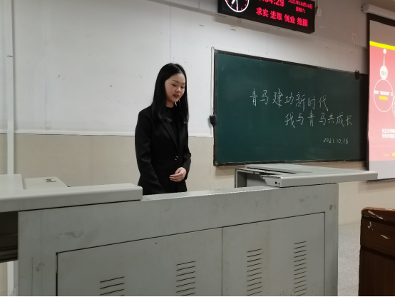 活动伊始,主持人鲁涧行介绍了青马班的发展历史,讲述了国家级、省级和校级青马工程的区别与相似之处,它们都是为了培养优秀的国家栋梁。紧接着,她解释了青马班的培养形式、培养机制、培养内容和培养目标,“聚是一团火,散是满天星”是青马班一直秉承的初心。鲁涧行同学结合自身经历,说明青马班是一个个人成长的良好平台,在学业和生活中都起到关键性作用。