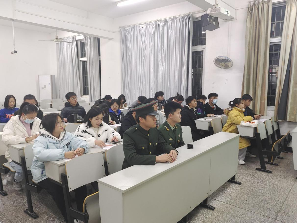 会上,宣讲员肖雄向同学们详细解读了老员工入伍有关政策,为有志参军报国的同学们提供了政策指导,同时多角度、全方位介绍了应征条件、入伍流程、退伍后就业的相关政策等,对应征报名、学费补偿、学籍及未来发展等热点问题进行了逐一讲解。