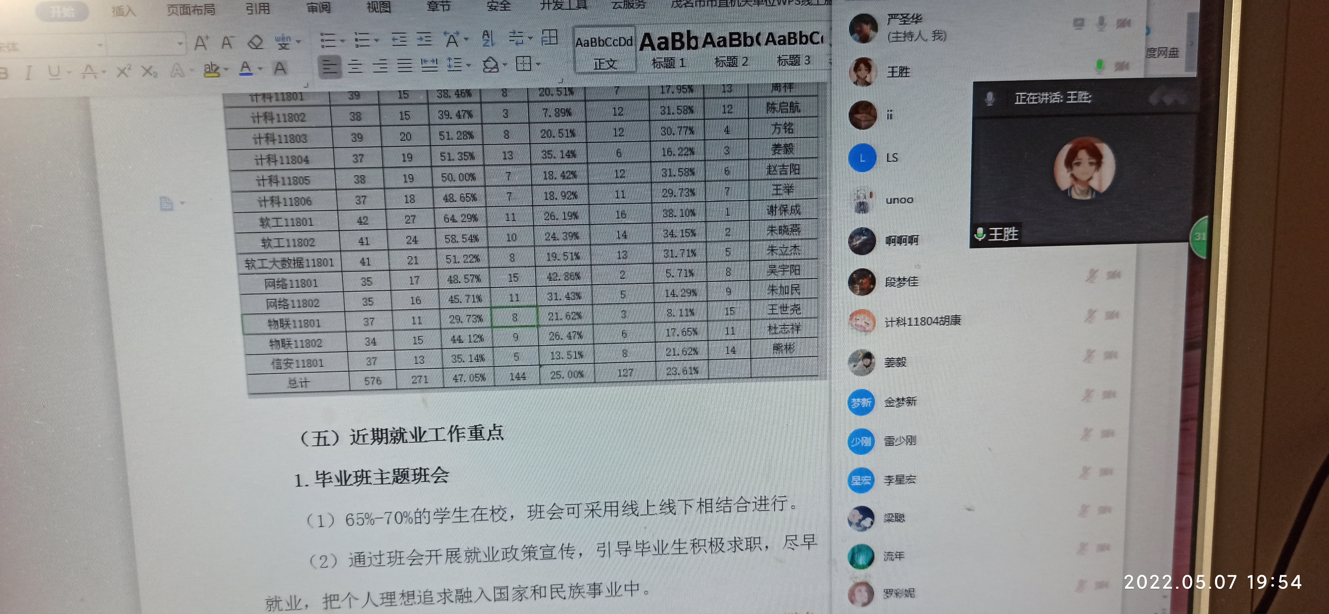 (通讯员 余珺瑞)为促进公司2022届毕业生就业、升学、离校等工作顺利进行,充分帮助同学们顺利毕业,5月7日—5月14日,伟德国际victor1946采取线上、线下相结合的方式开展2022届毕业生年级主题班会。会议由党委副书记颜学俊牵头,各班班主任主持,2022届毕业生全体参会。