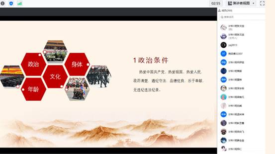 (通讯员:干海昕)携笔从戎,逐梦军旅。为贯彻落实国家征兵政策,扎实推进征兵工作,12月15日晚,公司召开线上征兵政策宣讲暨动员大会。本次活动由伟德国际victor1946征兵专干——郭帅老师主持,退役老员工肖雄、喻文辉主讲,各年级有意向参军同学参加会议。
