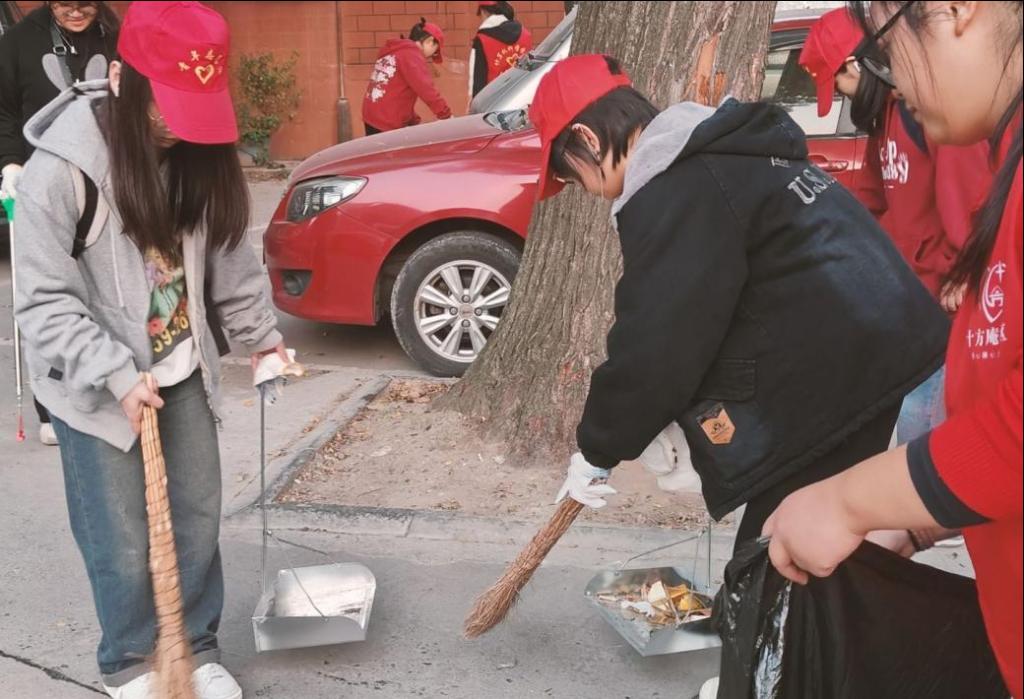 下午四点,志愿者们携带好清洁工具,准时到达社区服务中心,与社区工作人员交接、合影留念。活动中,志愿者们穿上红马甲,手拿扫把、铲子、铁夹、垃圾袋等清洁工具,十一人为一组,共计三组,分工明确,重点对街道里的饮料瓶、塑料袋、烟蒂等各种垃圾进行地毯式捡拾以及车棚中的落叶、积水进行清理,不放过任何一处死角,不漏掉任何一个盲区,做到“整治一处,清洁一处,有序一处”的成效。志愿活动让城市更加美好,让心灵更加充实,志愿者们身穿的红色马甲在阳光下格外耀眼,仿佛化成了一抹亮丽的中国红!