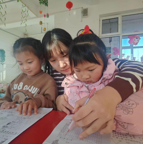 比如计科32301班于悦同学,在这个寒假踏入社区,成为留守儿童的临时老师和玩伴。除了每日的看书识字,她还细心地为孩子们准备一场乐高智力游戏。在游戏中,孩子们展现出了惊人的创造力和想象力,他们小心翼翼地拼装着每一个小零件,仿佛在构建自己心中的梦想世界。孩子们的笑声、讨论声此起彼伏,充满了欢乐和智慧的碰撞。