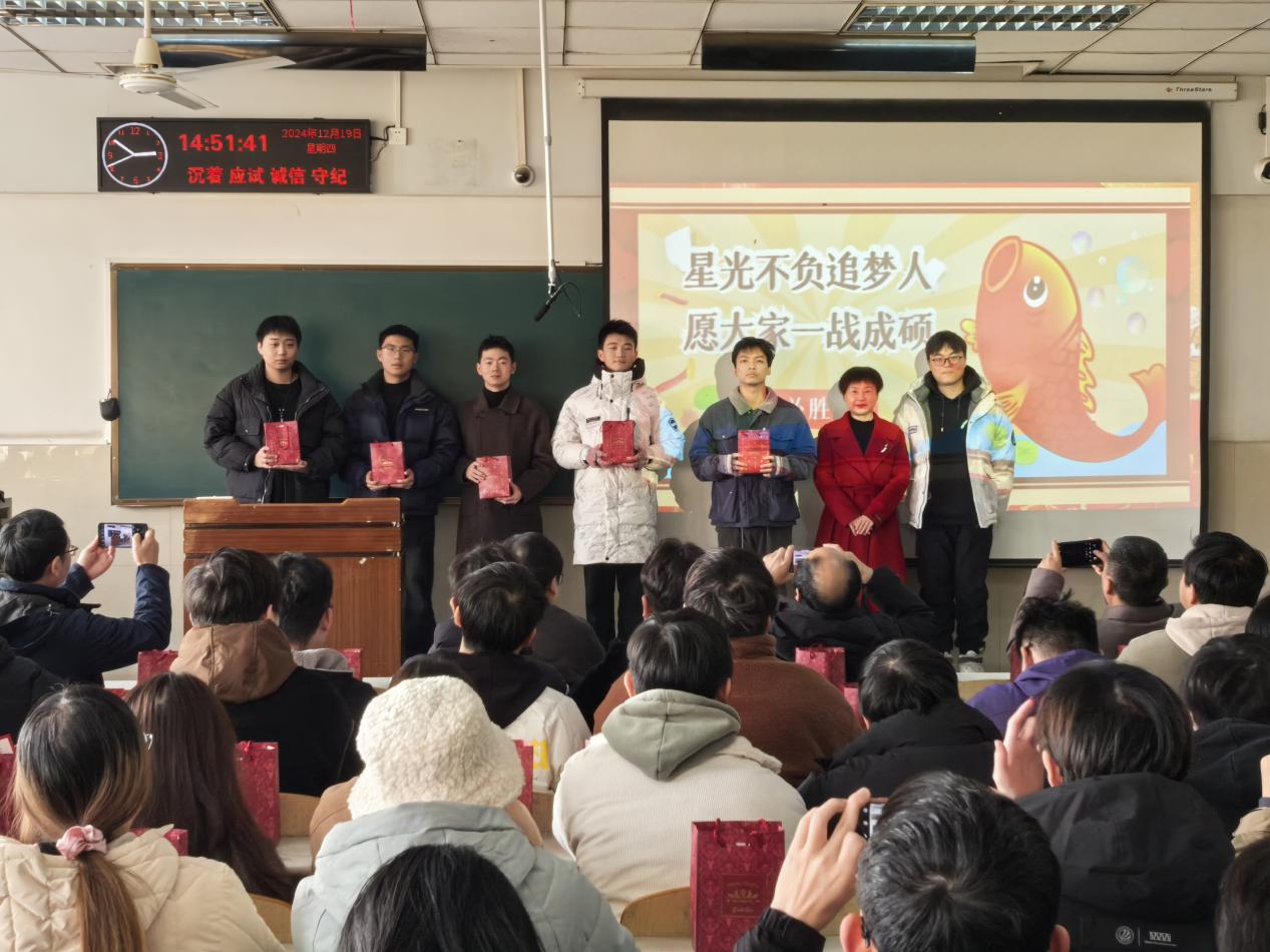 2025年全国硕士研究生入学考试在即,为帮助考研学子坚定考试信念,缓解备考压力,12月19日,伟德国际victor1946在12教302教室举行2025届毕业生考研送温暖活动暨考前动员会。公司经理崔艳荣老师、党委副书记肖彬老师、毕业班班主任参加此次活动。