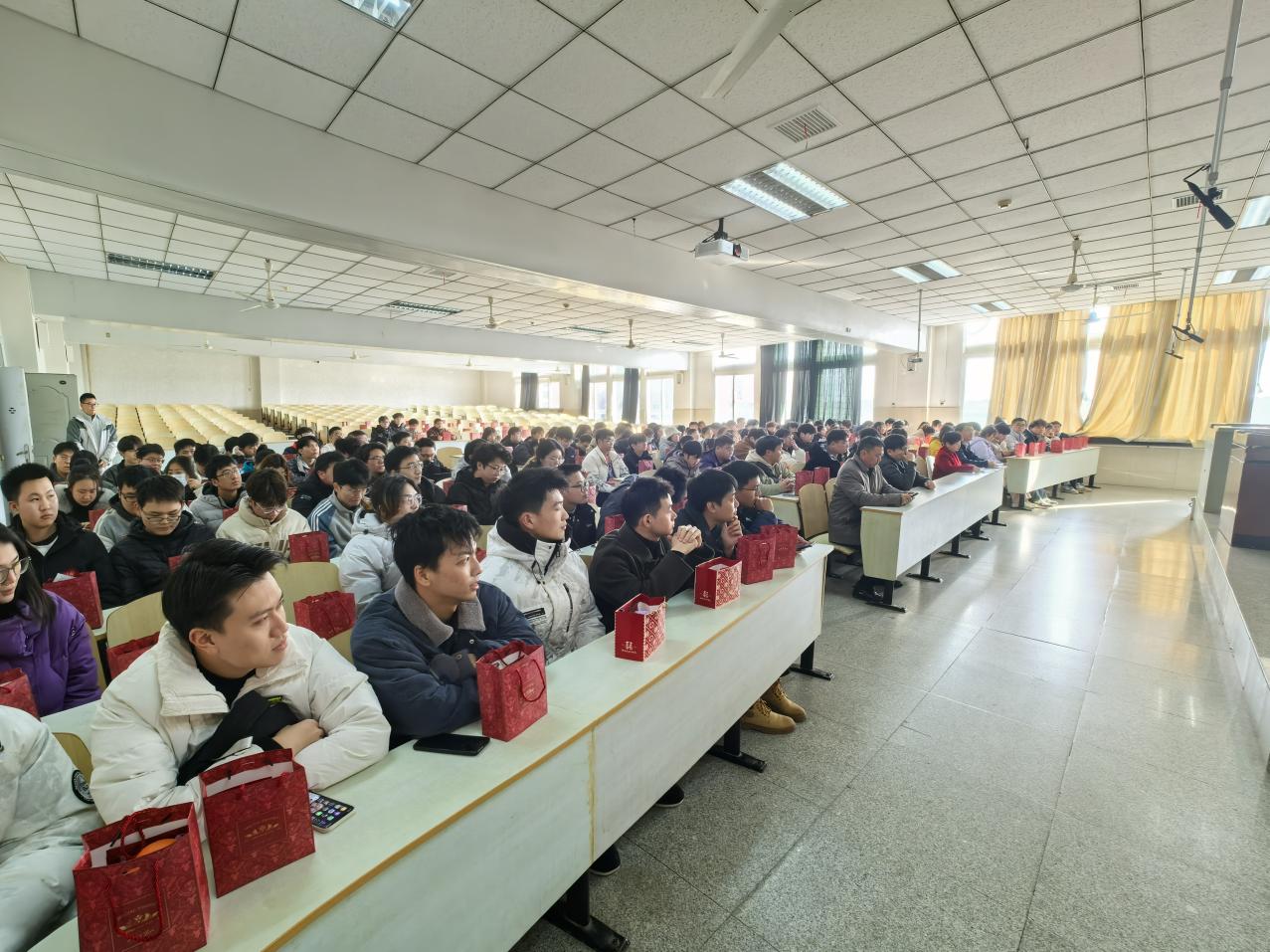 崔经理为考研员工作动员讲话。她对同学们的努力与付出给予了充分的肯定,路阻且长,行则将至,希望同学们保持乐观坚韧,以积极心态备考,坚定信心、全力以赴、沉着应考。接下来,崔经理为员工代表发放“考研大礼包”,并送上温暖祝福和鼓励。