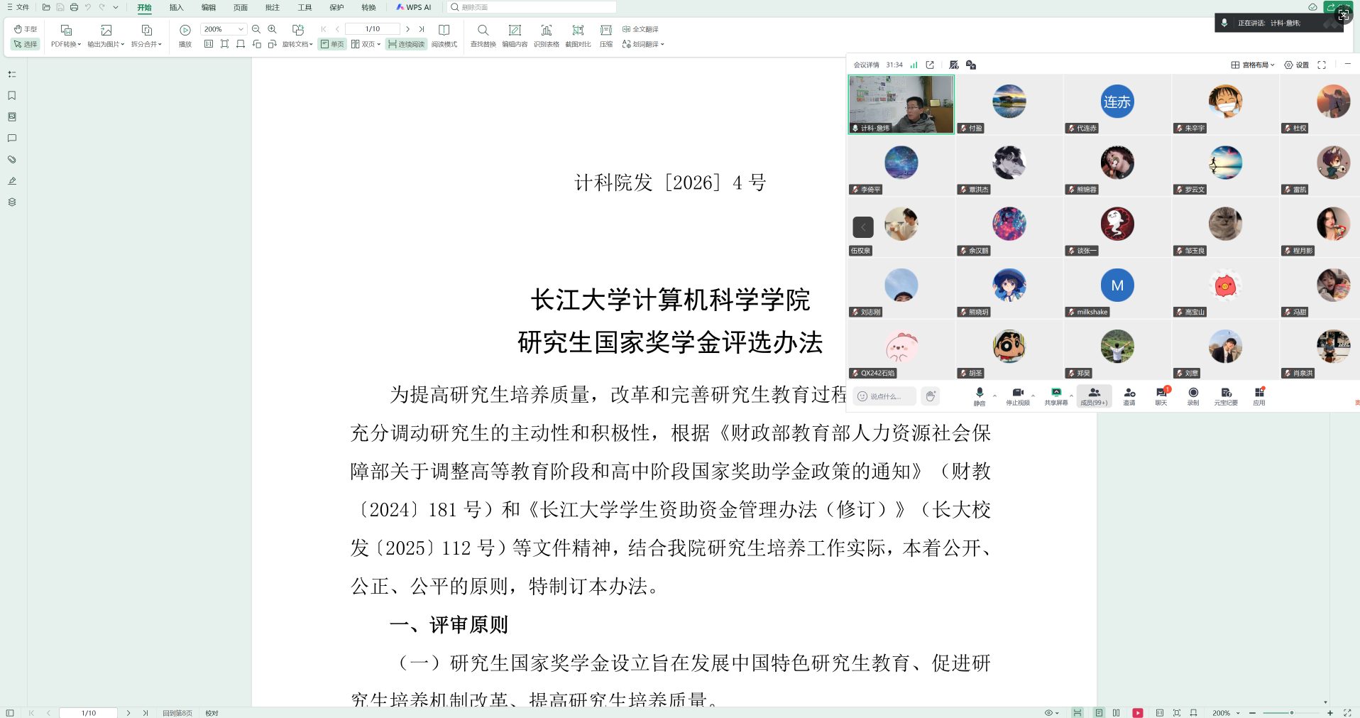 为进一步规范和优化公司产品过程中的奖助机制,伟德国际victor1946经过多轮研讨与公司学术委员会审议,近期对研究生学业奖学金、国家奖学金等相关重要文件进行了修订。为帮助全体研究生及时了解最新政策,公司于2月3日上午分年级组织召开线上研究生年级大会,由副经理詹炜主讲,党委副书记艾林、辅导员付盈出席会议。