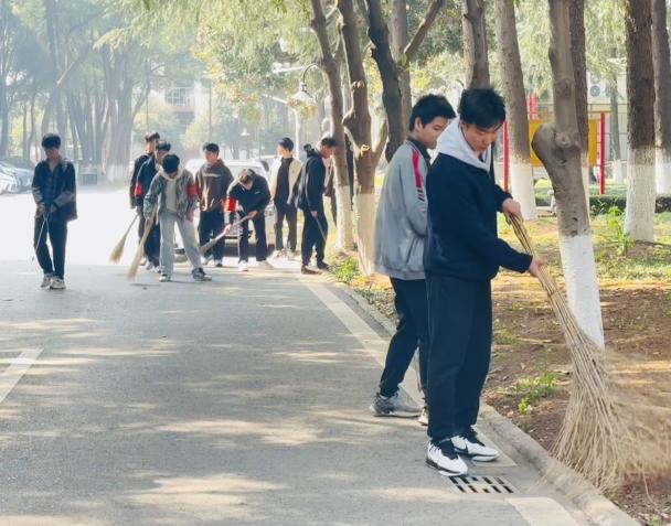 活动现场,学子们热情高涨、分工协作,充分发扬不怕脏、不怕累的优良作风。大家手持工具,细致清理校园道路、绿化带内的落叶、纸屑、杂物等垃圾,不放过一处卫生死角。大家用双手擦亮校园,用行动守护整洁,既切实便利了全校师生的日常出行,也为校园营造了整洁有序、温馨和谐的育人环境。