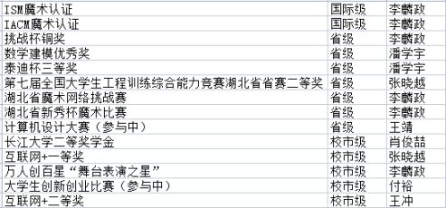 三、班级建设方面--建立核心,完善制度 开学始初,同学们通过演讲竞选班委,班委是民主选举产生的,形成有效的管理机制秉持“以人为本,以班为纲”的治班理念。 班干部们以身作则,以全责为己任,密切协作,按要求完成了公司公司安排的各项任务。 一个集体就是一个家,同学们来自大江南北,有着不同的口音,有着不同的习惯,汇聚于此,一切又是那么默契,那么自然,班里每个同学都十分配合公司的各项大小事务,认真做好每一件事,争创文明寝室、和谐班级。 以下是我们班同学在这一学年取得的获奖情况(部分):