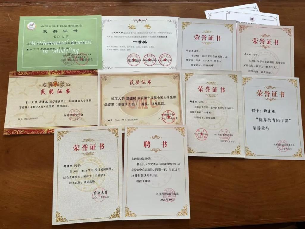 在学科竞赛上,自大二上学期接触Python程序设计课程以来,他对编程的浓厚兴趣逐渐滋生,意识到编程不仅仅是一项技能,更是理解和解决复杂问题的强大工具。为了深化这一兴趣,他在大二下学期及暑假期间参加了伟德victor1946网站数学建模培训,学习了Matlab等编程语言。在数学建模竞赛中,郑建斌担任团队的主要角色,负责编程和模型搭建。他凭借扎实的基础知识和创新的思维,带领团队在比赛中取得了优异成绩。这段经历不仅增强了他的自信心,也让他深刻认识到“实践是检验真理的唯一标准”的重要性。
