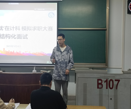 在团体就业辅导环节,严经理从就业形势、行业市场、公司业务、岗位分布、简历指导、集体面试以及1v1面试技巧等方面给同学们开展就业指导讲座,并在现场进行了模拟面试;高级研发工程师程小东员工分享了自己的求职经历并与同学们交流互动。