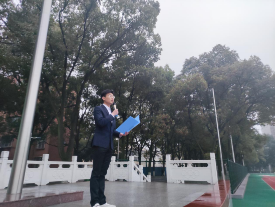 仪式第二项,员工代表——计科类32001班的刘克飞同学作国旗下讲话。他由春节期间家人团聚的幸福美满,联想到依旧在岗位上坚持的解放军战士、警察、医护工作人员等的无私奋献,呼吁我们作为社会的一员,应该珍惜当下和平安宁的生活。对于新学期的学习,刘克飞同学也提出了他的几点建议:面对新学期更高专业要求的学习,务必做好好课堂学习和课后复习的时间管理,希望同学们对自己的学习有清晰的计划和目标,勤于学习,善于思考。