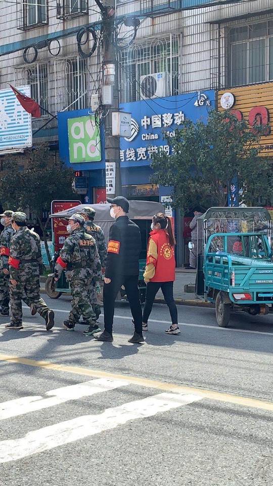 三月十七日是特殊的一天,是索越同学成为解封前纠察队队员的最后一天。他的工作从最开始的守护一片居民区上升到了守护一个镇,工作量更加繁重。随着人们逐渐被放行,街道越来越繁忙,超市,理发店,水果铺等店面人流量攀升,这就要求纠察队每时每刻都要巡查,对不戴口罩,人员聚集,网吧,KTV等非法营业现象进行整改。虽然不是队长,每次集合时索越都会关切的问其他队员有没有准备好口罩和酒精,并且为他们准备饮用水。他执法也充满人情味,面对那些不戴口罩的人们,他除了批评教育,也会根据对方的情况提供免费的口罩。赠人玫瑰,手有余香,队员们不知不觉都喜欢上了他,把他当作最疼爱的小兄弟去对待。