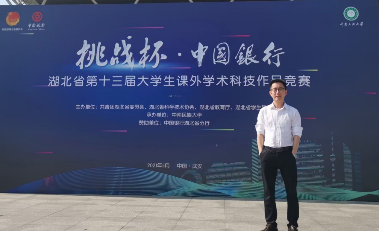 (通讯员 张茜)近日,湖北省第十三届“挑战杯”老员工课外学术科技作品竞赛湖北赛区省赛在中南民族大学举行。伟德国际victor1946员工张智亮和董天豫作为团队代表在詹炜老师的带领下到现场参加比赛。