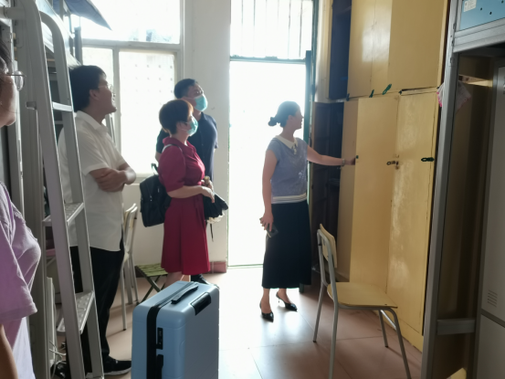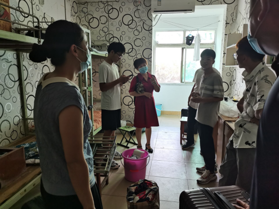 当日下午,公司经理崔艳荣、党委书记黄群俊、党委副书记颜学俊与辅导员张颖旭一起走访了员工寝室,与员工亲切交流。