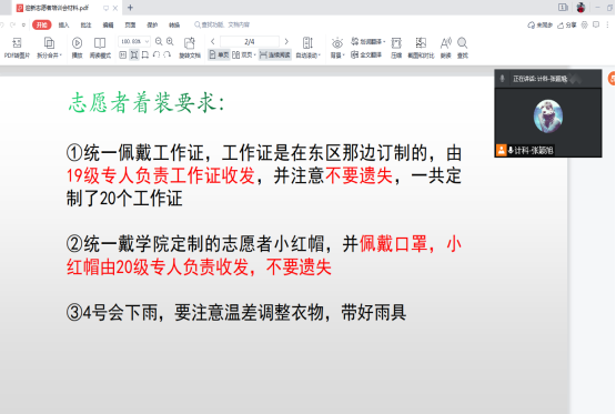 据悉,为确保迎新工作的顺利进行,公司在前期做了大量的准备工作。院员工会主席团负责招募迎新志愿者,公司为志愿者统一配备了工作证和志愿者帽,新生辅导员张颖旭对志愿者进行了线上线下培训,培训会上,张老师就志愿者排班、着装、职责及安全事项等方面作出明确要求。