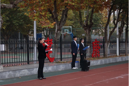 升旗仪式第三项:合唱《我和我的祖国》,进行健康跑。全体师生齐唱《我和我的祖国》,整齐洪亮的歌声响彻校园。合唱结束后,在领跑人员的带领下,同学们迎着晨风开始奔跑,本次升旗仪式圆满结束。