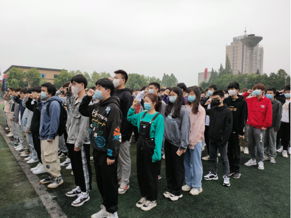 活动逐渐落下序幕,主持人张优激励大家以最饱满的心态去面对六月份的英语四六级考试,并带领全体同学宣誓,以端庄诚信的姿态迎接挑战。活动最后,由主持人张优宣布“千班唱红歌,万人健康跑”活动正式开始,在领跑人员的积极带领下,同学们围绕着操场开始跑步,本次活动正式拉下序幕。