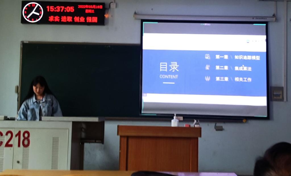 伟德国际victor19469位研究生依次登台演讲,分别围绕各自的研究方向,为同学们分享了9个课题:基于TCN的知识追踪研究,基于集成算法的知识追踪模型,深度GAN网络的数据增强算法研究,基于mopso的遥感图像融合,多注意模块的知识追踪模型,融合可分离卷积与剪枝的色觉测试图识别方法研究,LBP算法特征提取及应用,基于STM32的图像识别的研究与应用,基于一种新架构的虚拟化云平台研究与设计等内容。学术论文报告会已经成为同学们知识共享和传播的一种重要方式,在演讲过程中,导师与听众和演讲人针对相关研究成果互动、探讨。每名研究生演讲完后,四位导师从全方位对演讲员工的汇报进行仔细点评,对其研究内容可能遇到的科研困难进行指导,通过点评有效促进了研究生的成长。