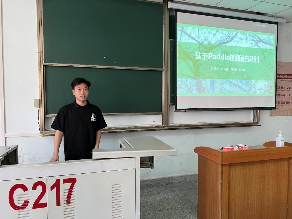 伟德国际victor19468位研究生依次登台演讲,分别围绕各自的研究方向,为同学们分享了8个课题:基于DeeplabV3+的叶片病害分割、船舶相似度识别、船舶目标检测、基于paddle的船舶识别、基于改进YOLOv5的算法研究、深度置信网络DBN、航道视频拼接融合技术、图像分类的方法研究与应用。
