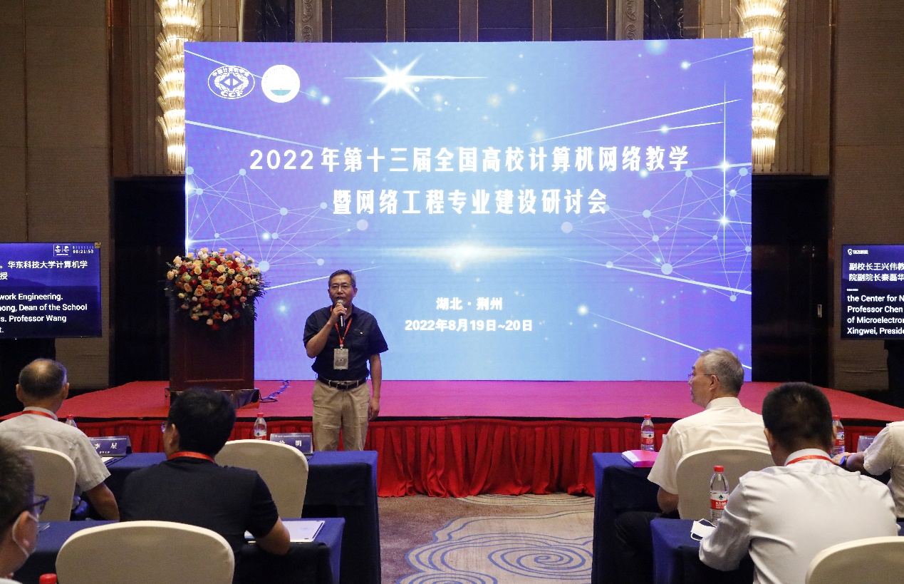 8月20日,第十三届全国高校计算机网络教学暨网络工程专业建设研讨会在湖北荆州举行。来自清华大学、北京大学、浙江大学、华中科技大学、东北大学、国防科技大学、科大讯飞、华为、未来网络等数十所高校、科研单位、企业的100多名专家、学者参加研讨会。大会共同主席、伟德victor1946网站董事长冯征、教育部计算机教学指导委员会副主任蒋宗礼在开幕式上分别致辞。