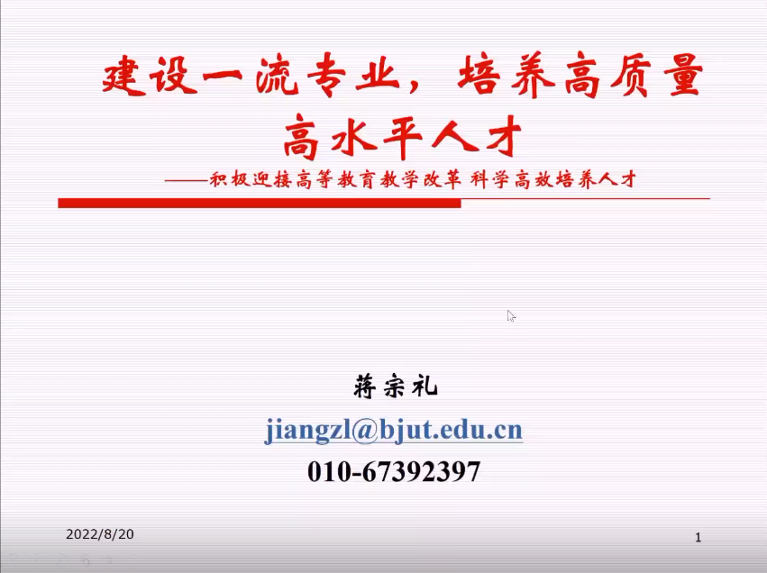特邀报告二:建设一流专业,培养高质量高水平人才