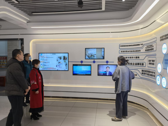11月15日,崔艳荣一行参观了武汉烽火创新谷,与武汉国际创客中心有限公司总经理陈迎锋、武汉华林梦想科技有限公司董事长彭曦等洽谈校企合作,就员工实习实训、产业公司建设以及实验室共建等方面达成初步合作意向。