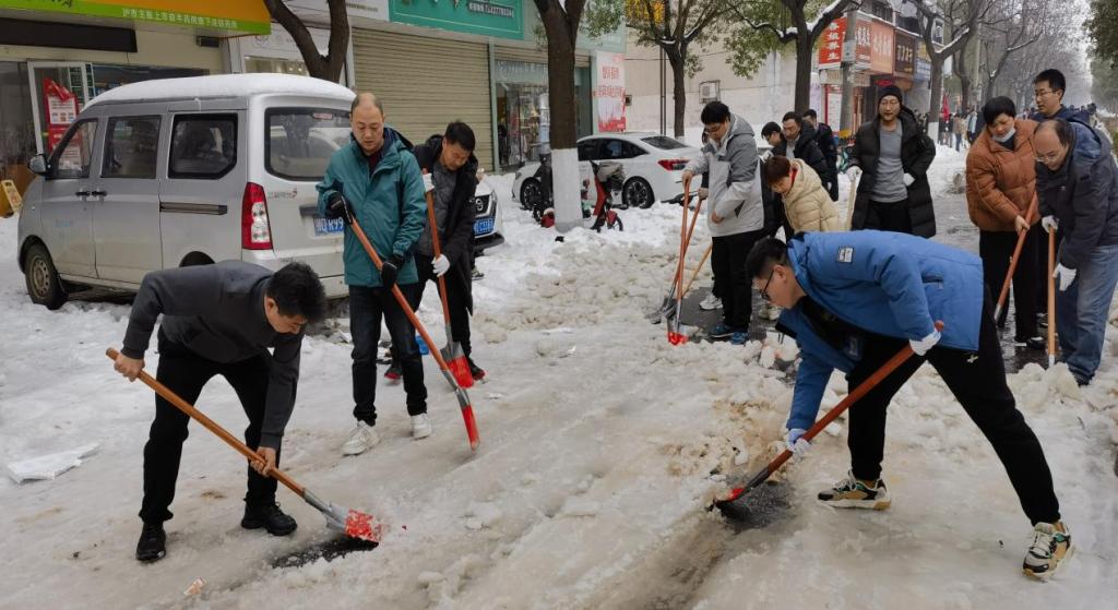 近日,湖北荆州遭遇大范围低温雨雪冰冻天气,道路积雪结冰给交通、居民出行带来了诸多不便。根据荆州市委《关于组织市直机关和企事业单位党员干部开展城区主次干道除雪破冰工作的通知》要求和公司工作安排,2月7日上午伟德国际victor1946以雪为令,广大党员教师迅速集结,在经理、书记的带领下积极参加除雪破冰工作。