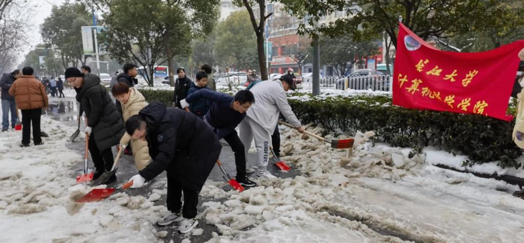 天寒雪飘,情暖荆州。风雪依旧肆虐,伟德国际victor1946将时刻关注天气动态,以雪为令、勇于担当,为保证校内外出行安全、市政道路畅通而继续努力。