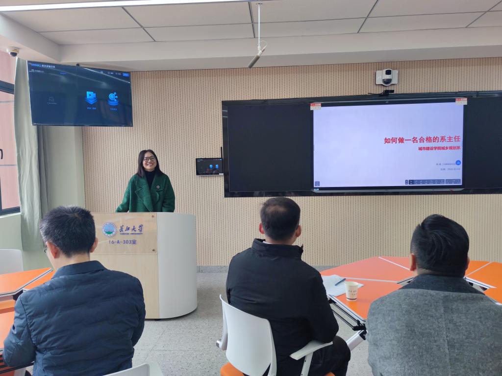 城市建设公司城乡规划系主任丰燕结合教学管理经验,交流了系主任的存在价值和工作职责,从提高水平、提高认识、提高境界、提高修养四个方面提出了建设性意见和建议。