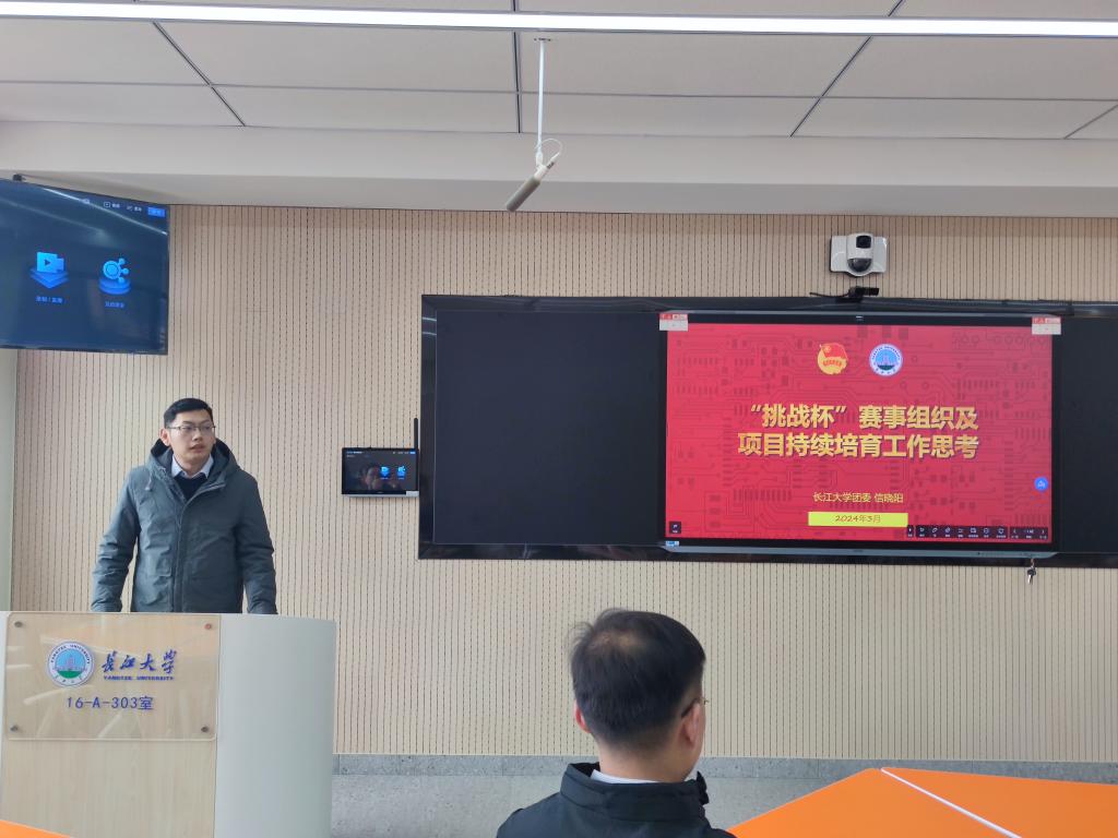 校团委副书记信晓阳详细介绍了“挑战杯”赛事组织及持续培育工作经验,通过一个个实例展示,提出竞赛组织要认认真真做好赛事研究、做好组织动员、做好项目培育的可行性建议。