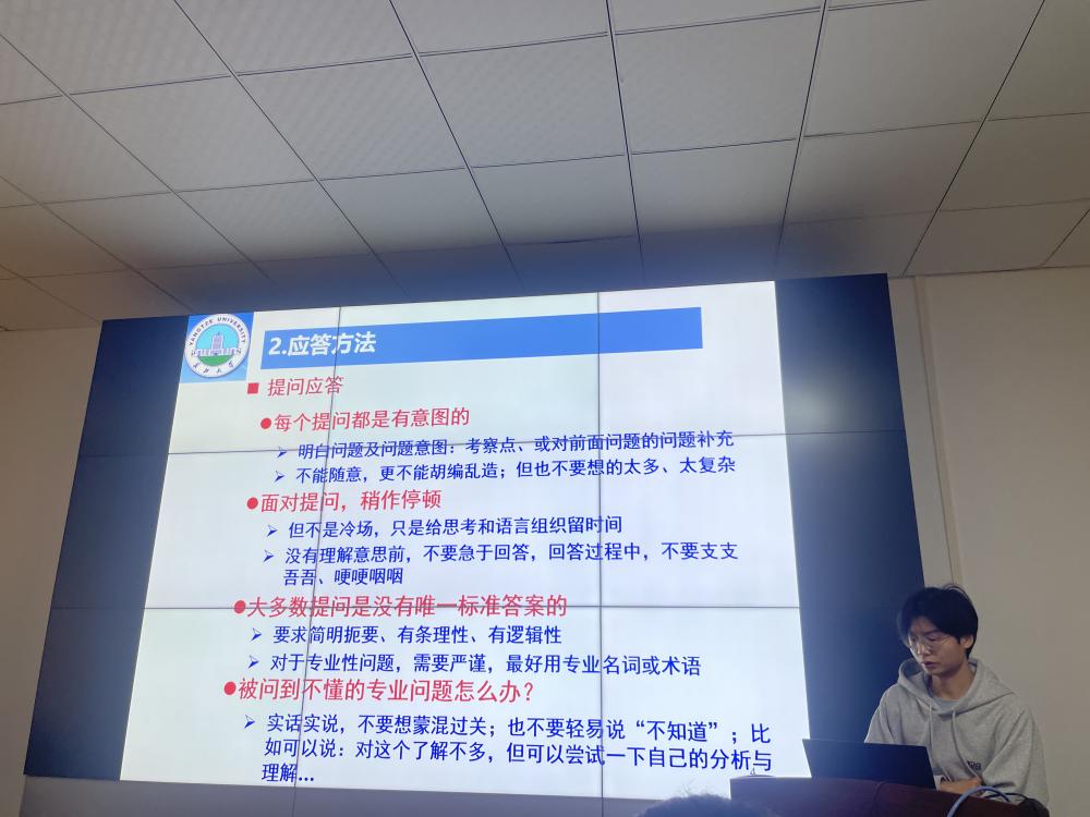 公司2023级研究生徐东来同学,从充分准备、应答方法、常见提问和注意事项四个方面出发,和大家交流了研究生复试前后必须注意的相关细节,帮助同学们更加了解考研复试流程以及内容,增强顺利通过考研复试的信心和决心。同学们纷纷表示收获颇多,对自己接下来的学习具有指导意义。