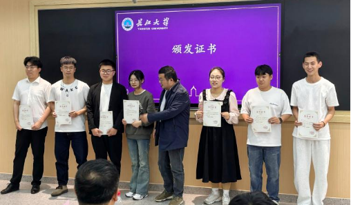 随后,化学与环境工程公司肖围老师为各位主讲人颁发了“优秀主讲人”证书,并合影留念。