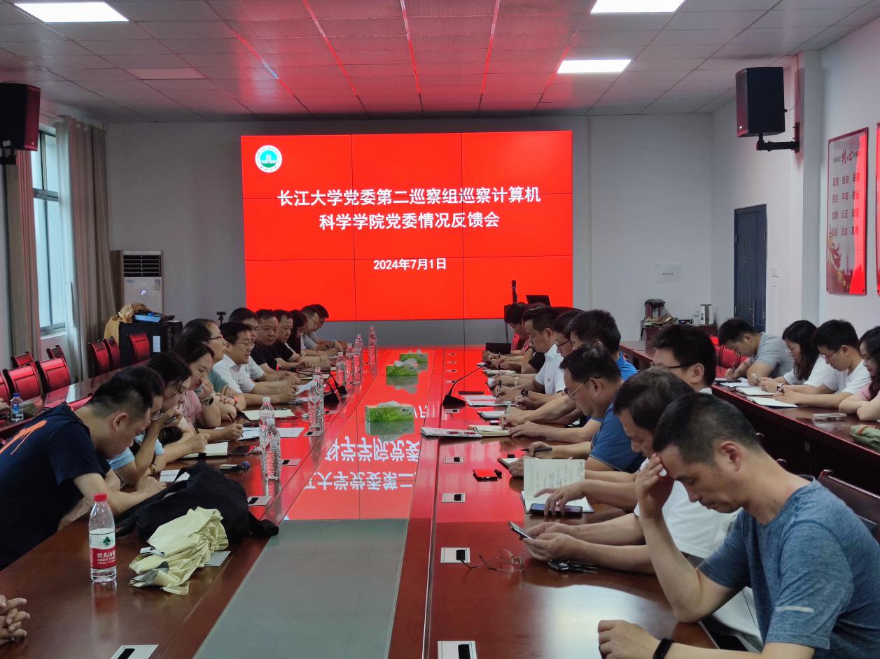 7月1日,二届党委第一轮巡察第二巡察组巡察计算机科学公司党委反馈会在5教501会议室召开。