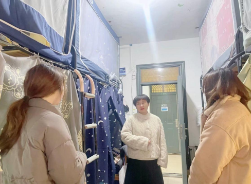 在员工宿舍,公司领导与同学们亲切交谈,仔细询问他们的生活情况,包括住宿条件是否舒适、日常生活是否便利等,同时特别强调了宿舍用电安全和卫生问题,鼓励同学们营造一个整洁、安全、和谐的居住环境。辅导员和班主任老师则与员工们分享了老员工活的经验和心得,耐心解答同学们在学业规划、职业发展等方面的困惑,与个别重点员工开展了谈心谈话活动。