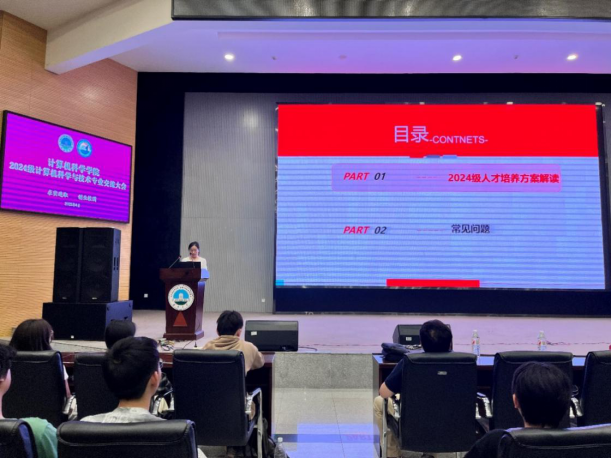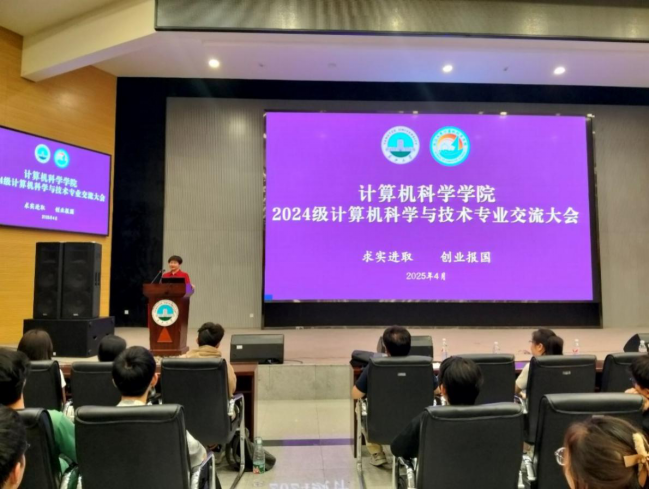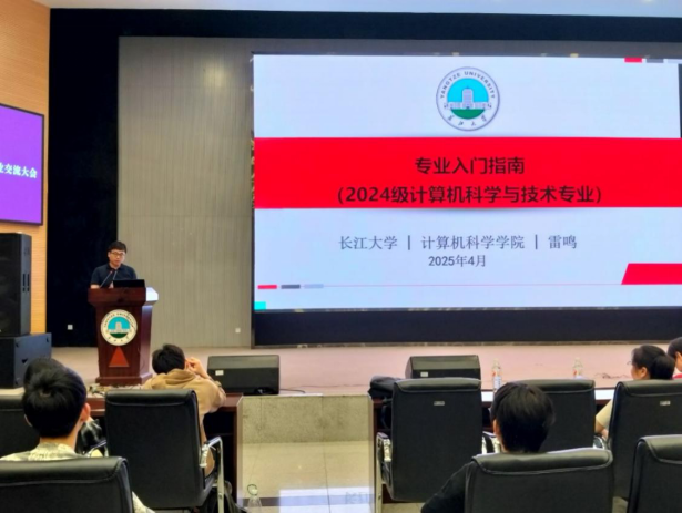 2025年4月28日晚7点至8点30分,伟德国际victor1946计算机科学与技术专业于农科大楼1058学术报告厅成功举办2024级新生专业交流会。伟德国际victor1946经理崔艳荣,经理助理兼计算机科学与技术系主任雷鸣,副主任张凯、代江华,新引进的博士后张玉繁,学工办老师蒋代运,为2024级计科专业全体230名同学介绍专业发展与成长规划,会议由雷鸣老师主持。