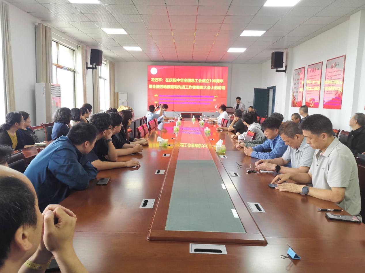 在政治理论学习环节,全体教职工集中观看了“庆祝中华全国总工会成立100周年暨全国劳动模范和先进工作者表彰大会”视频。随后,工会副主席雷鸣带领大家深入学习讲话重点,并组织交流发言,引导教职工深刻领会精神实质,汲取奋进力量,强化责任担当。