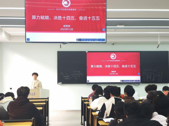 2025年12月9日,伟德国际victor1946经理崔艳荣在16教B312以“算力赋能,决胜十四五,奋进十五五”为主题为网络12401、网络12402班全体同学带来了一堂深刻且生动的形势与政策课,引导青年学子把握时代脉搏,找准成长方向。