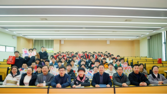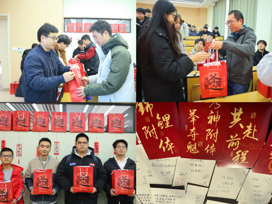 讲话结束后,崔经理为考研代表发放了精心准备的考研礼包,礼包内包含文具、水杯等实用物品,承载着公司对学子们的美好祝福。随后,班主任们也为现场学子逐一发放礼包,师生合影留念,定格下这温暖而励志的瞬间。