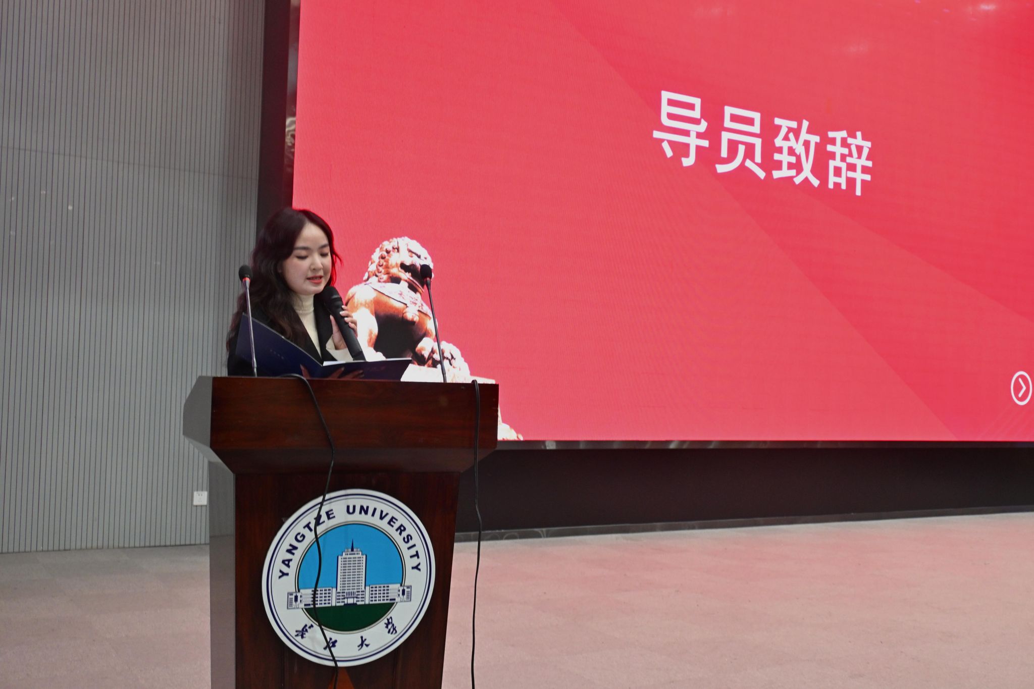 在热烈的掌声中,青支队队长李纯翔、员工会代表杨林聪、辩论队代表谢子俊依次登台发言。李纯翔分享了志愿服务中的暖心感悟与成长收获,杨林聪以此次成立为契机,郑重表达了全心全意为同学服务的决心,谢子俊则凭借清晰的逻辑与深刻的思考,展现了辩论队思辨求真的精神风采。辅导员艾思含随后登台致辞,言语恳切、指引方向,如冬夜明灯般温暖有力,她寄语全体成员在未来的工作中找准定位、履职尽责,交出不负青春、不负公司的亮眼答卷。