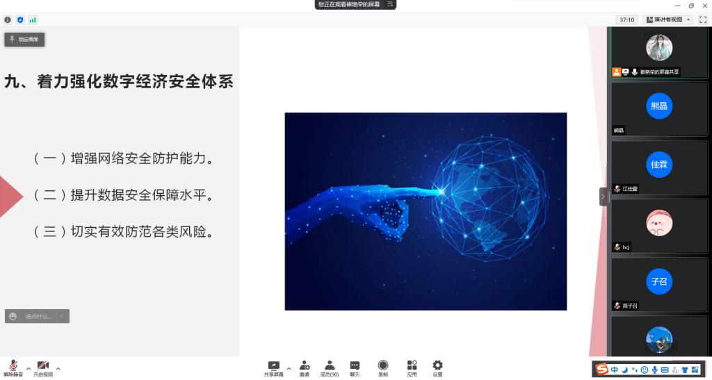 2022年4月21日下午,伟德国际victor1946经理崔艳荣以《“十四五”数字经济发展规划》为题作形势政策报告,公司一二年级研究生通过腾讯会议参会。