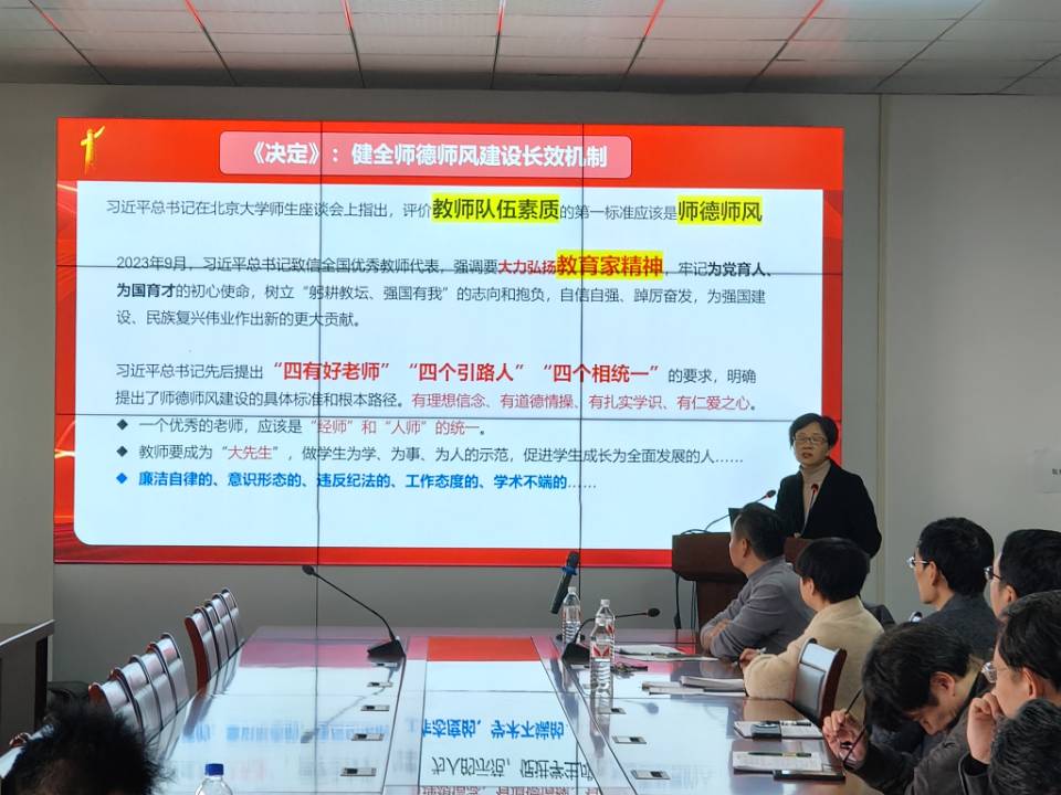 为深入学习贯彻党的二十届三中全会精神,全面加强师德师风建设,11月21日,公司邀请刘小燕教授为全体教职工作党的二十届三中全会精神宣讲报告,并开展师德师风专题教育。报告会由公司党委书记郑健主持。