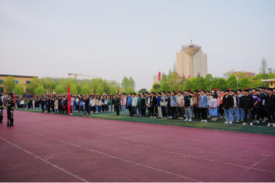 活动伊始,全体参加人员于田径场集合完毕,由主持人石鑫慧宣布升旗仪式正式开始。7点升旗仪式正式开始,现场随着仪仗队的出现而安静下来。在全体师生的注目礼下,英姿飒爽的国旗护卫队队员们护送鲜艳的五星红旗进场。行礼完毕,伴随着庄严的中华人民共和国国歌,五星红旗冉冉升起,迎风飘扬。在场的每一个人向国旗行注目礼,深怀对祖国无限的热爱和崇高的敬意。